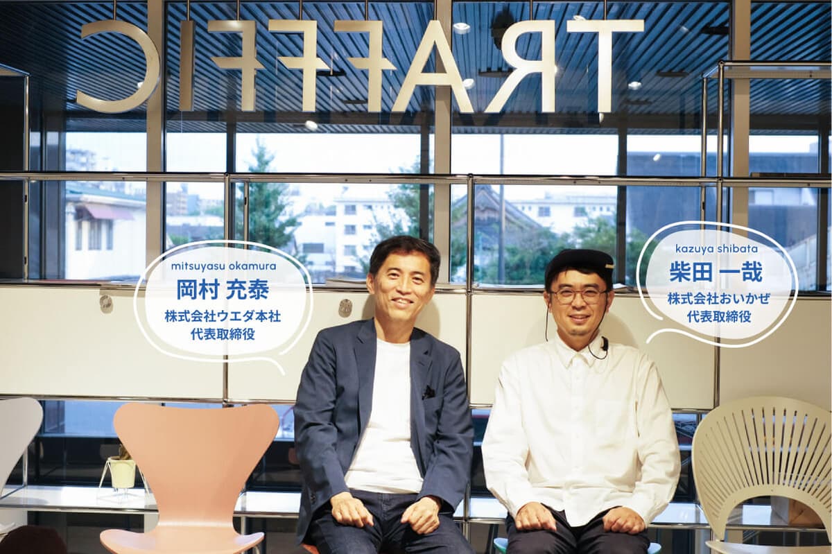 第4回目のお相手は、「働く環境の総合商社」としてオフィスを中心とした空間のプロデュースやリノベーションを行っている、株式会社ウエダ本社代表の岡村充泰さん。「オフィス」というキーワードを軸に、それぞれの「はたらくデザイン」について語り合いました。